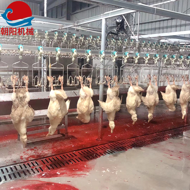 3)毛雞上掛間和屠宰車間嚴(yán)格分開,毛雞上掛間盡量設(shè)計(jì)陰暗,避免強(qiáng)光照射,造成毛雞拍打翅膀過度緊張。